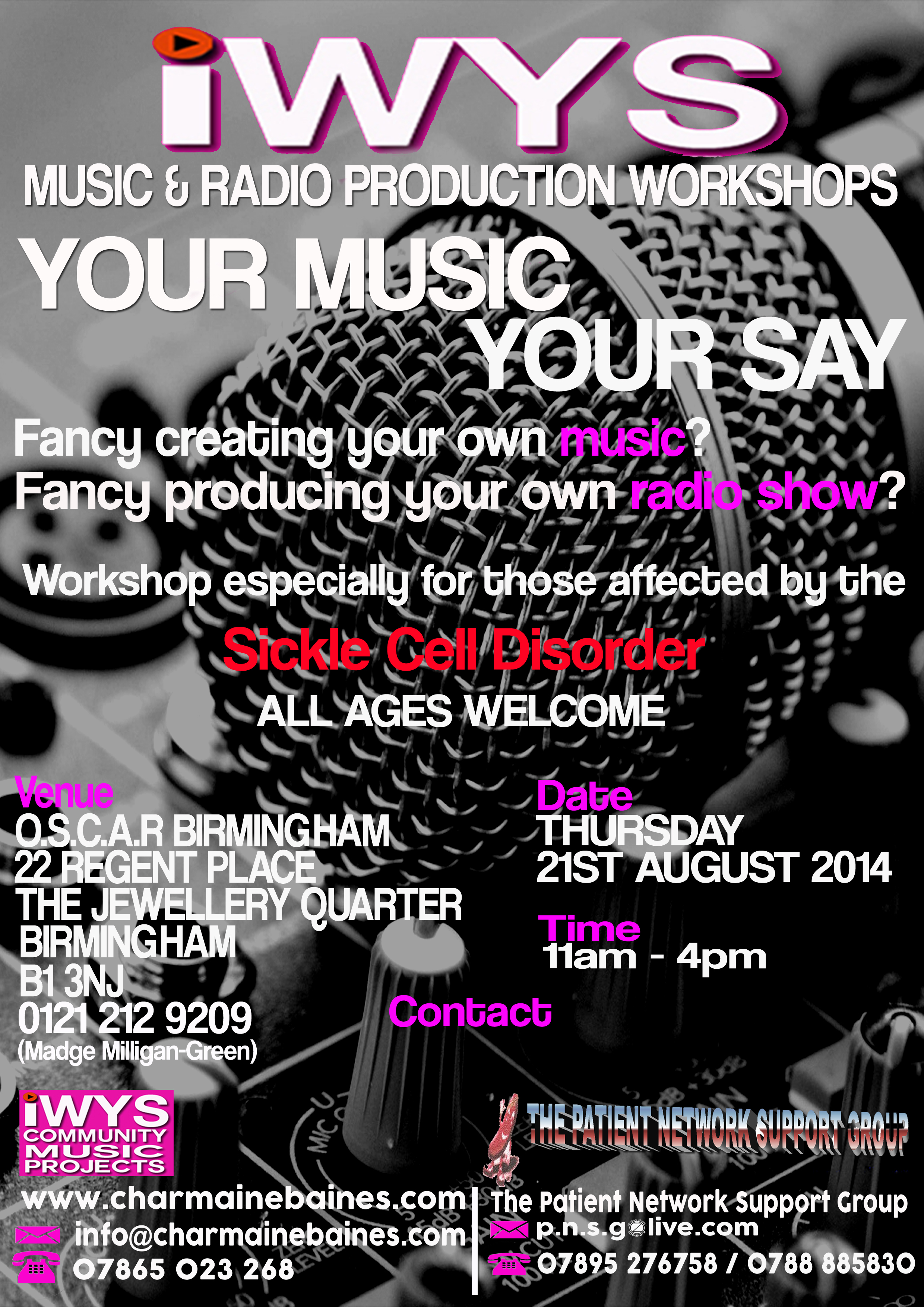 The iWYS community music and radio project is proud to be working in conjunction with O.S.C.A.R Sickle Cell organisation Birmingham, raising awareness of Sickle Cell and those who have been affected by it.