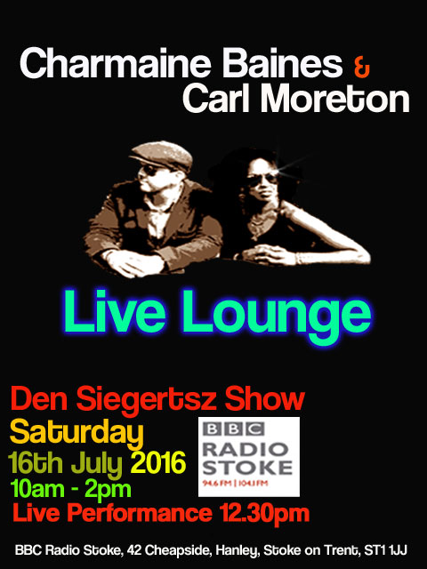 Charmaine Baines Live Lounge on the Den Seigertsz show, BBC Radio Stoke 16th July 2016